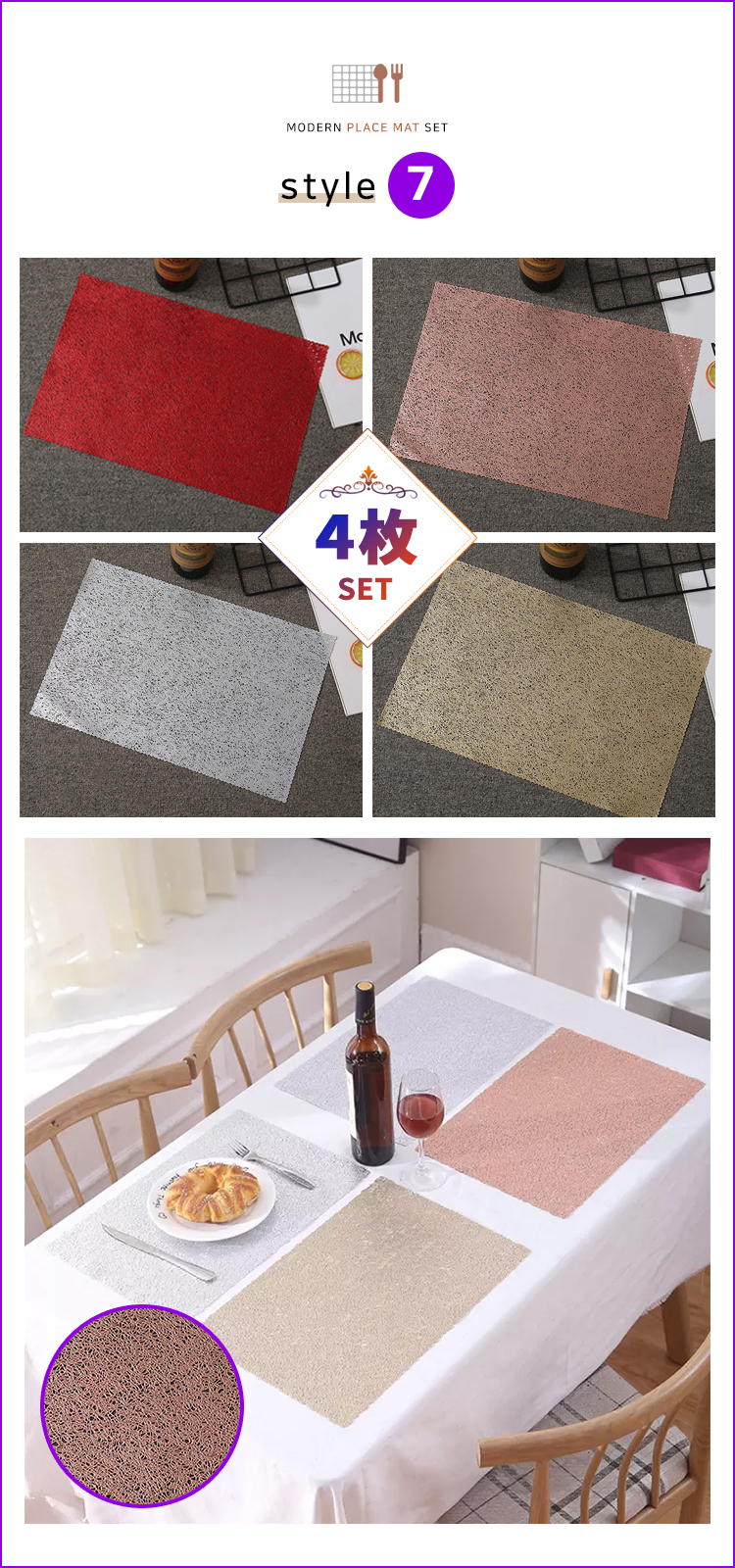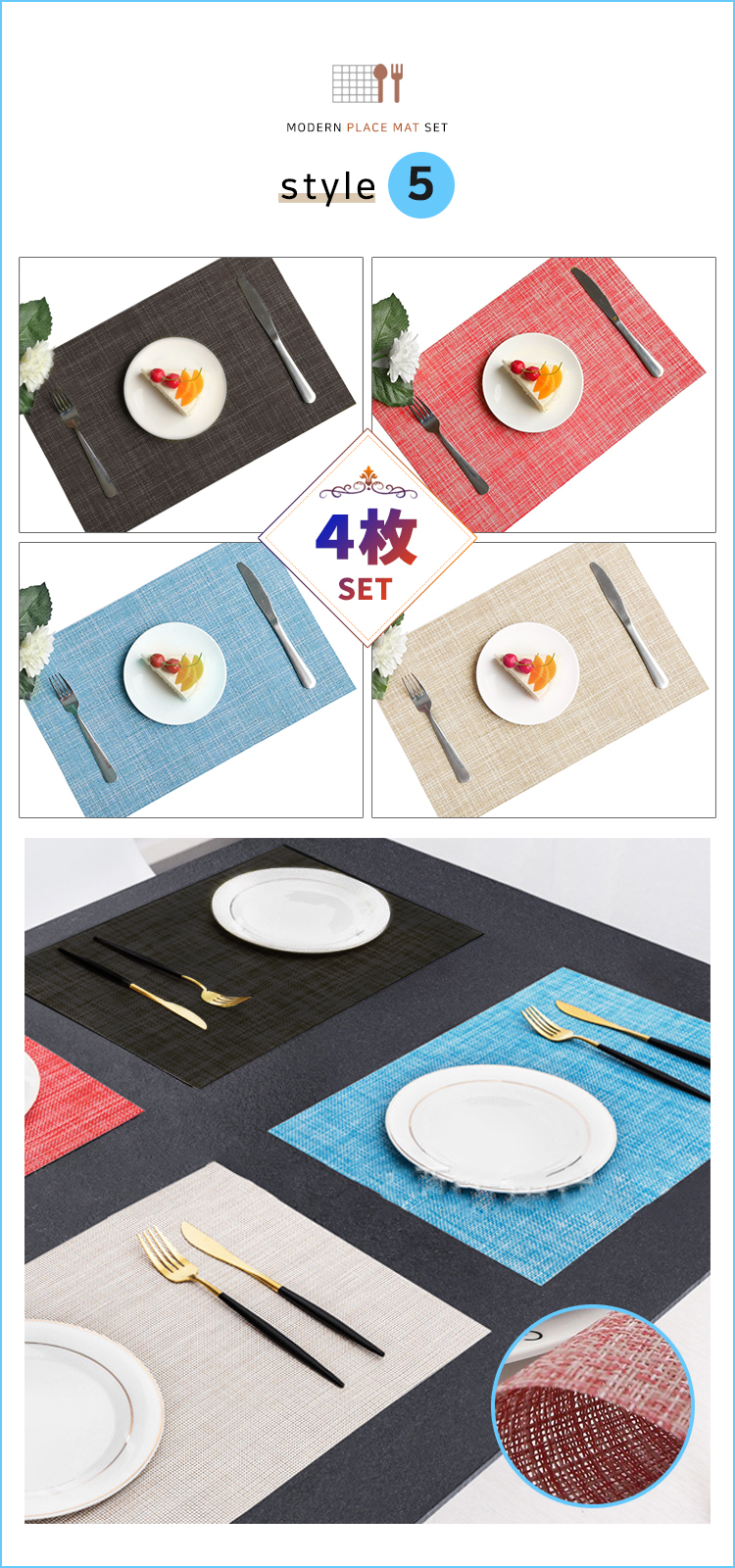 ランチョンマット おしゃれ 4枚セット 北欧 撥水 防汚 水洗い可能 高級感 全7種 摩擦 飾り 食卓 華やか 雰囲気 PVC製 家庭 レストラン 用 横柄 4色
