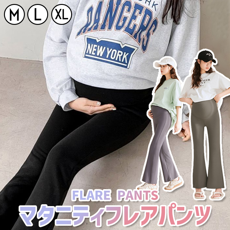 マタニティ パンツ レディース フレア レギンス ズボン 薄手 フレアパンツ フレアレギンス 美脚 美尻 保温 脚長 オフィスコーデ 長ズボン 無地 マタニティズボン