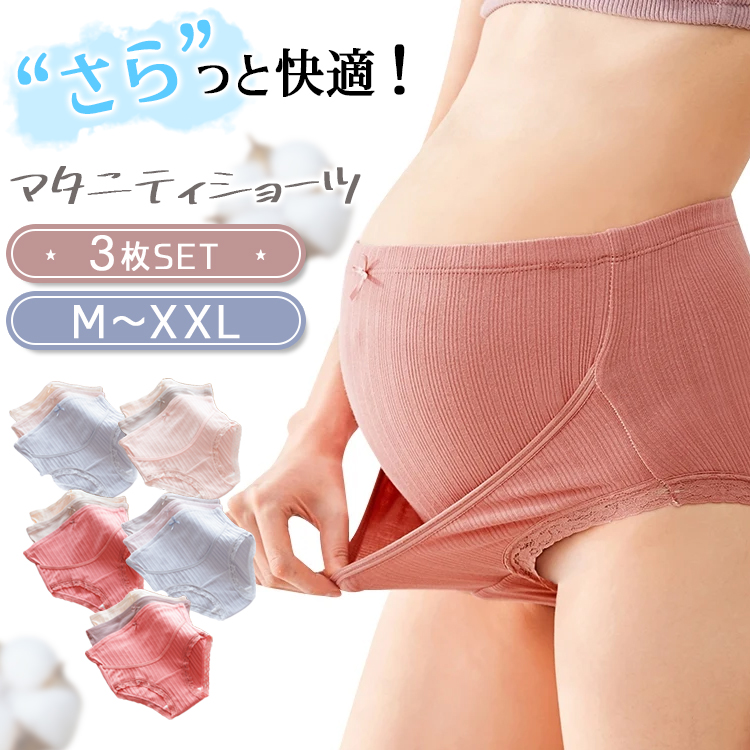 マタニティ ショーツ 3枚セット 下着 リブ ハイウエスト 出産準備 まとめ買い レディース パンツ 無地 深履き 産前 産後 大きいサイズ ス レース 綿 可愛い