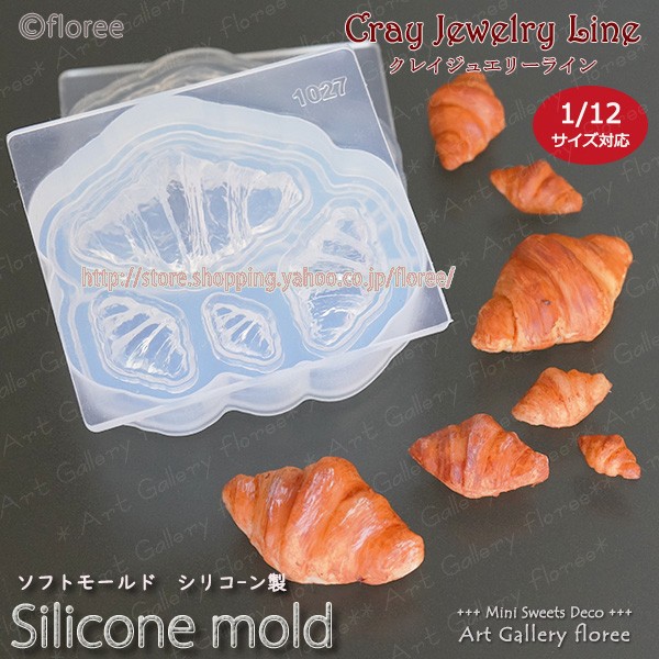 クレイジュエリー型抜き クロワッサン 立体型 シリコンモールド レジン 粘土型 ミニチュアフード 樹脂粘土 フローレ アートギャラリーシリコンモールド