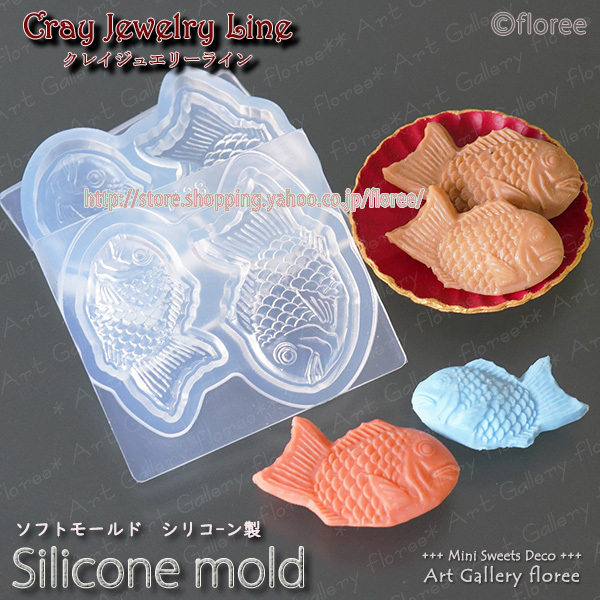 クレイジュエリー型抜き たいやき立体型 シリコンモールド レジン 粘土型 ミニチュア和菓子 樹脂粘土 フローレ アートギャラリーシリコンモールド ミニチュア