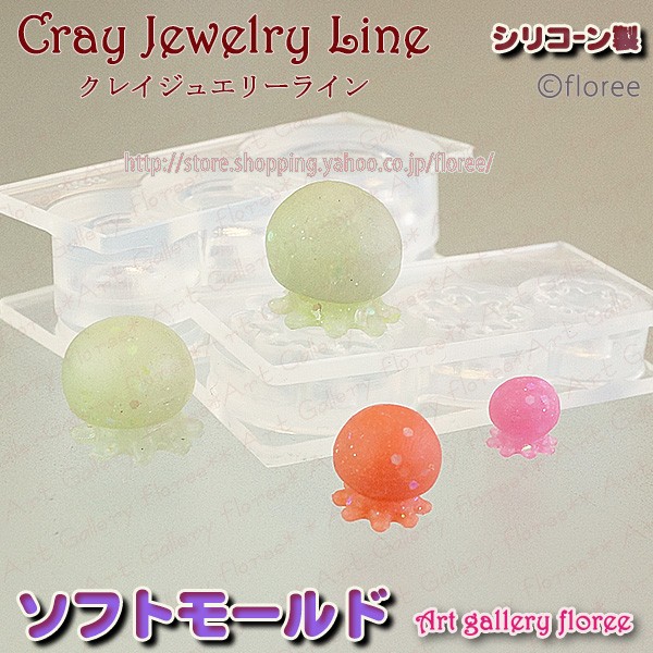クレイジュエリー型抜き くらげ 立体型 シリコンモールド シリコーン型 UVレジン型 粘土型 ミニチュアシェル 樹脂粘土 フローレ floree