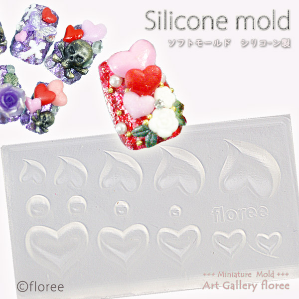 Miniature Parts ぷっくりハート シリコンモールド ミニチュアハート型 推し活 推しネイル 粘土型 樹脂粘土 LEDレジン アートギャラリーフローレ floree