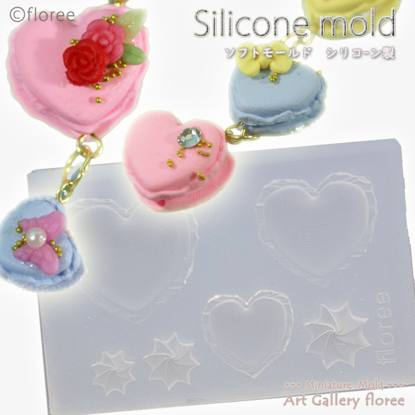 Miniature sweets ぷっくりマカロンハートL シリコンモールド ミニチュア用マカロン型 シリコーン型 UVレジン型 粘土型 樹脂粘土 フローレ floree