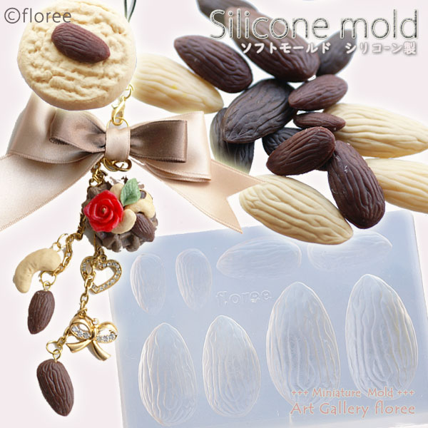 Miniature fruit アーモンド シリコンモールド ミニチュア用ナッツ型 シリコーン型 UVレジン型 粘土型 樹脂粘土 フローレ floree