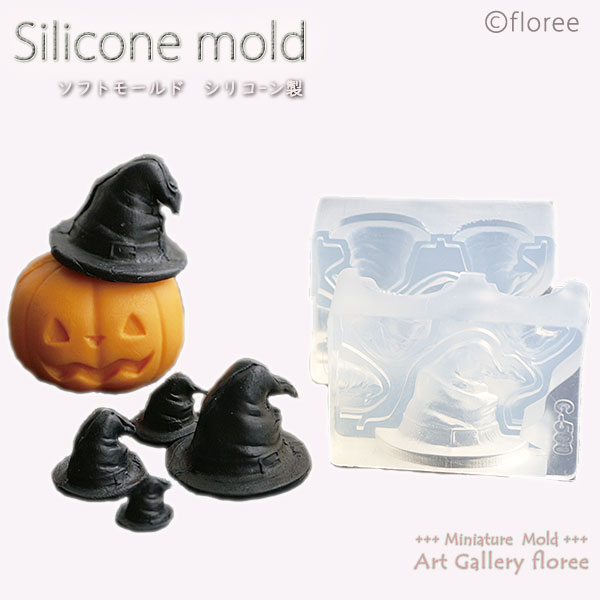 Halloween ハロウィンハット 両面4サイズ シリコンモールド ミニチュアハロウィン 粘土型 UVレジン 樹脂粘土 アートギャラリーフローレ floree