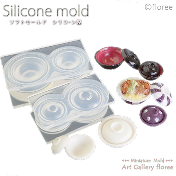 Miniature どんぶり(中・小)立体型 シリコンモールド ミニチュア食器型 シリコーン型 UVレジン型 粘土型 樹脂粘土 フローレ floree