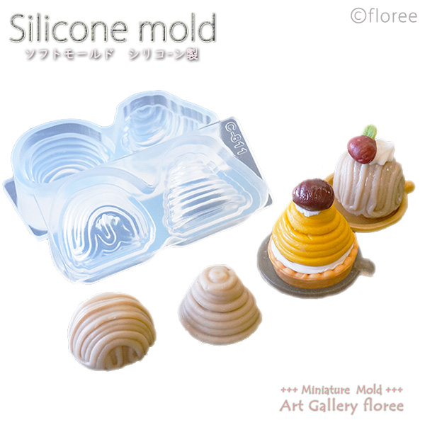 Miniature sweets モンブランケーキ両面型(大)2タイプ シリコンモールド ミニチュア用ケーキ型 シリコーン型 粘土型 フローレ