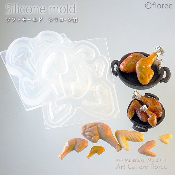 Miniature food チキンレッグ&手羽先立体型 シリコンモールド ミニチュアクリスマス フェイクフード 粘土型 樹脂粘土 フローレ floree