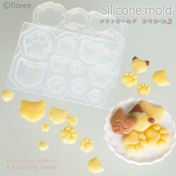 Miniature sweets ニャンコ&肉球厚焼きクッキー両面型 シリコンモールド ミニチュア 粘土型 レジン 樹脂粘土 アートギャラリーフローレ floree