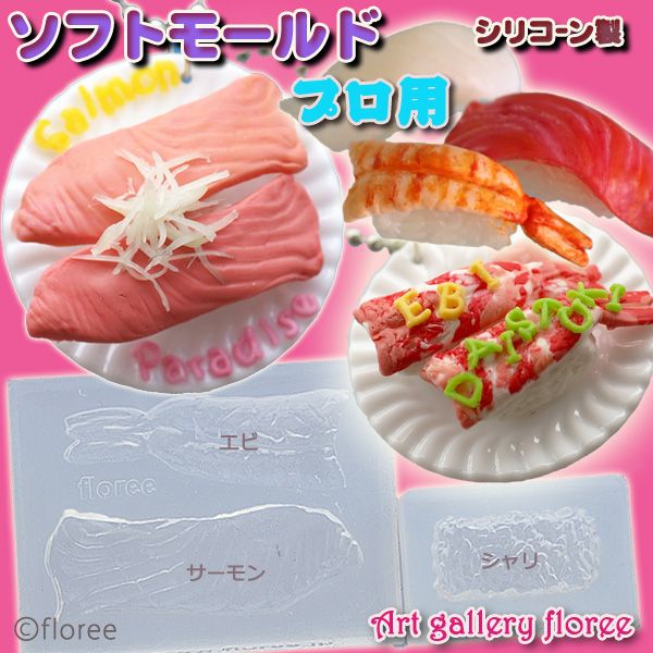 Miniature food すし(エビ&サーモン)プロ用シリコンモールド ミニチュア用お寿司型 シリコーン型 粘土型 樹脂粘土 フローレ floree
