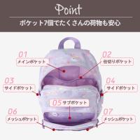 成長の早い年中〜小学校高学年まで使えるサイズ感です。 元気に動き回るお子様のリュックのずり落ちを防止する、安心のハーネスつき!! ショルダーやハーネスは高さや長さを細かく調節できるため、より体に合わせて使うことができますメインルームは、A4ノートやフラットファイルが入る大きさで、通園や通学・遠足やお出かけなど様々なシーンで大活躍してくれます! フロントと内部にそれぞれポケットがついているため、ハンカチや鍵、パスケース等の小物の収納に◎ サイドポケットはギャザー付きでペットボトルが入ります。各所にDカンを配置し パスケースや防犯ブザーも付けられます。