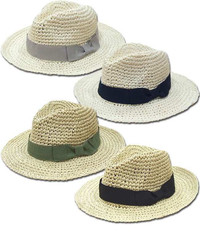 夏の定番!手編み中折れハット。シンプルなデザインなので、 どんなコーディネートにも合わせやすいのがGOOD。 手編みの風合いも良く、つば広仕様になっているのもポイント♪