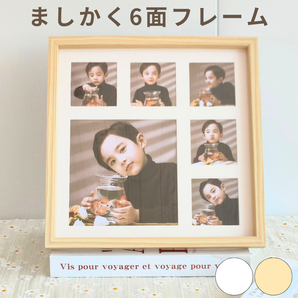 **6枚の写真を同時に飾れる多面タイプで、成長記録や思い出を一つのフレームにまとめて展示できます。