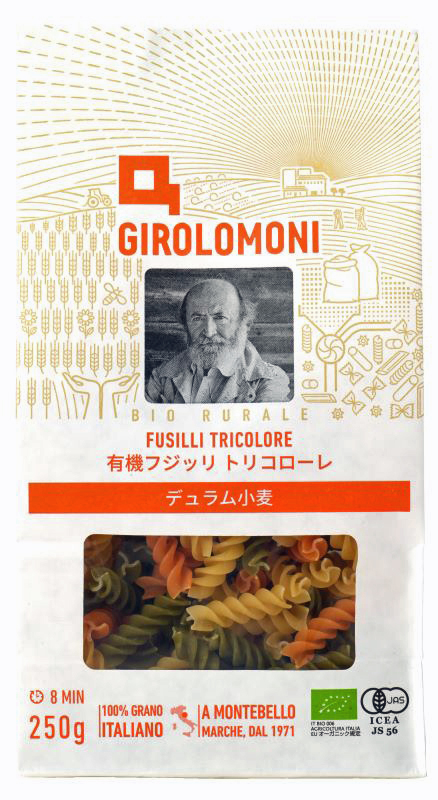従来のフジッリに、有機トマトパウダーをブレンドしたオレンジ色のフジッリ、有機ほうれん草パウダーをブレンドした緑色のフジッリがおおよそ均等に入っています。見た目がかわいらしく、出来上がったお料理が彩り豊かになります。素材の味もほんのりとしますが強い味ではありませんので、野菜嫌いのお子様でも違和感なくお召し上がりいただけます。