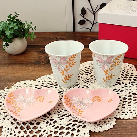 La brise ハートペアフリーカップ&プレート(洋食器 フリーカップ お皿 プレート ペア食器 ペア 箱入り プレゼント アウトレット 業務用 業務用食器 日本製)