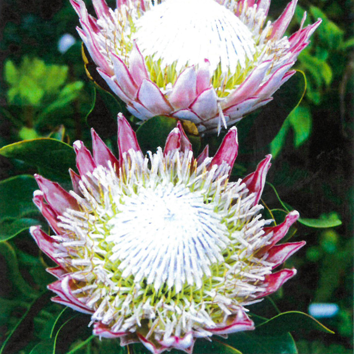 プロティアは、美しく彩られた大型の総苞のたいへん豪華な花が咲きます。〈br〉