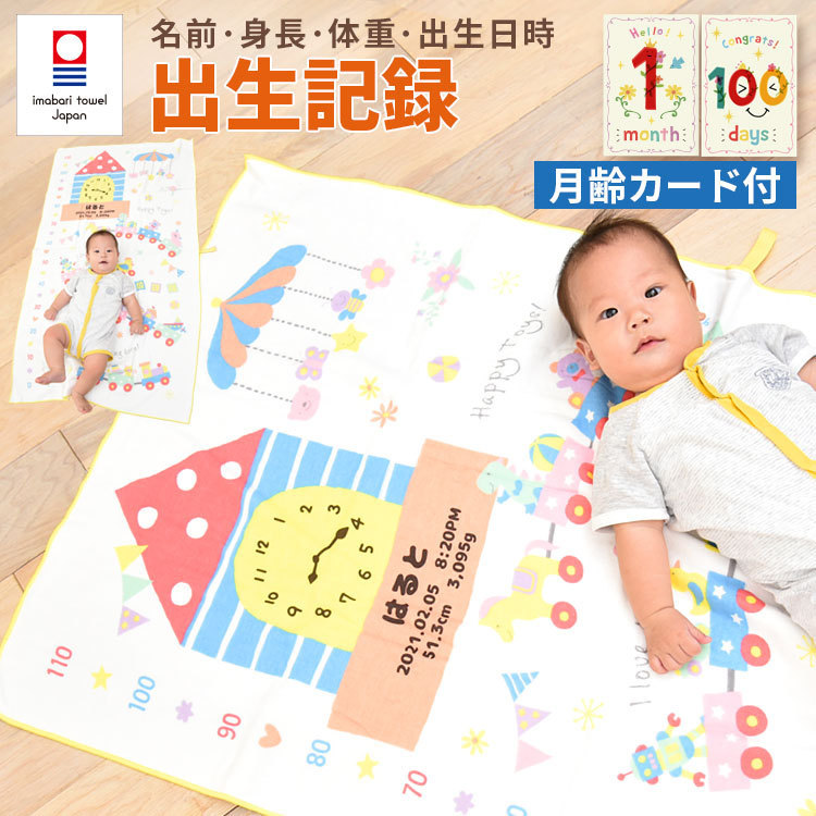 出産祝い 今治タオル 名入れ 身長計付きバスタオル 男の子 女の子 赤ちゃん おしゃれ ベビーギフト お祝い プレゼント ガーゼタオルケット おもちゃの遊園地