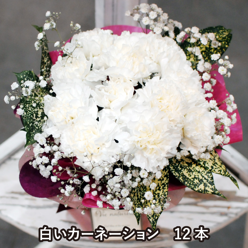白いカーネーション そのまま飾れる カーネーションのホワイトブーケ