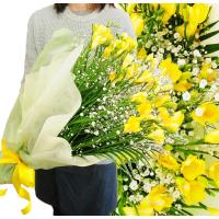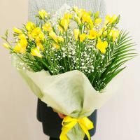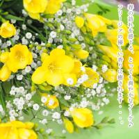 色鮮やかな黄色に甘い香りのフリージアの花束です。