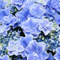 島根県オリジナル品種。爽やかなブルーに白の縁取り。開花が進むと、中心部の白い花が沸き立つ雲のように盛り上がり白く縁取られた周囲の花は、まるで夜空に散りばめられた星達が描く「銀河」を想わせます。