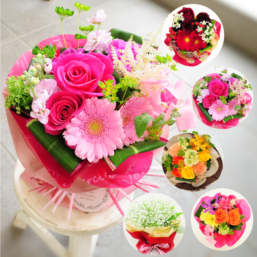 花瓶に移し替える手間がかからず、贈られた方に好評なブーケです。