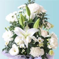 百合のお花をお入れし、その時に入荷している新鮮なお花で作成するお供えアレンジメントです。
