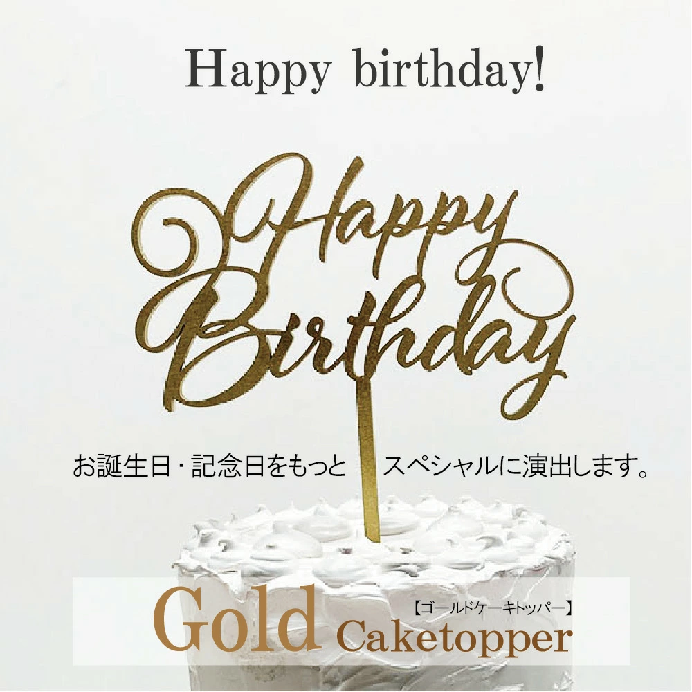 ケーキトッパー【ハッピーバースデイ】【ゴールド】バースデイ ケーキ 誕生日 記念日 装飾 木製 オーナメント
