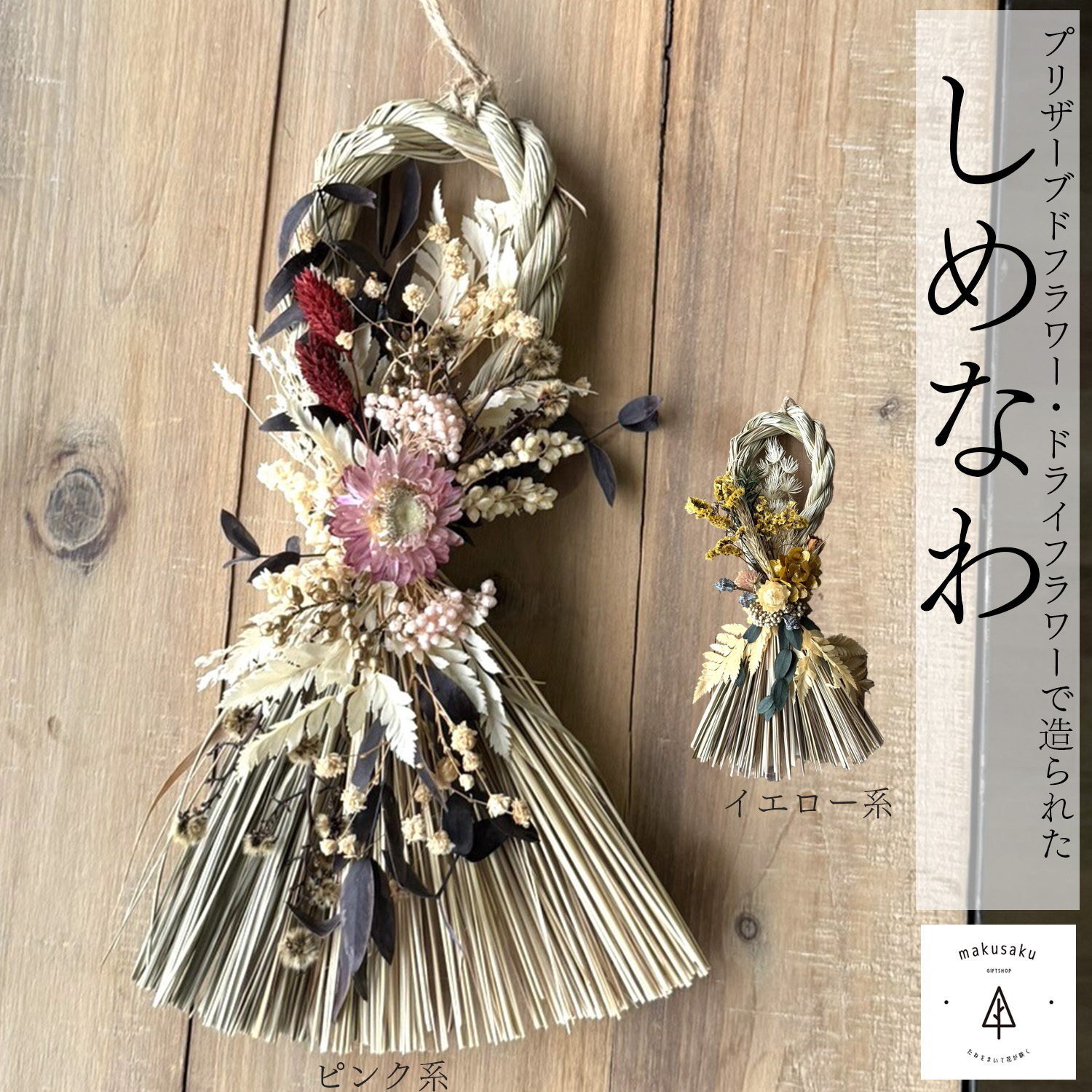 【残りわずか】しめ縄 2025 プリザーブドフラワー・ドライフラワー お正月 玄関 家内安全 商売繁盛 ボード付き【しめ縄2種類】