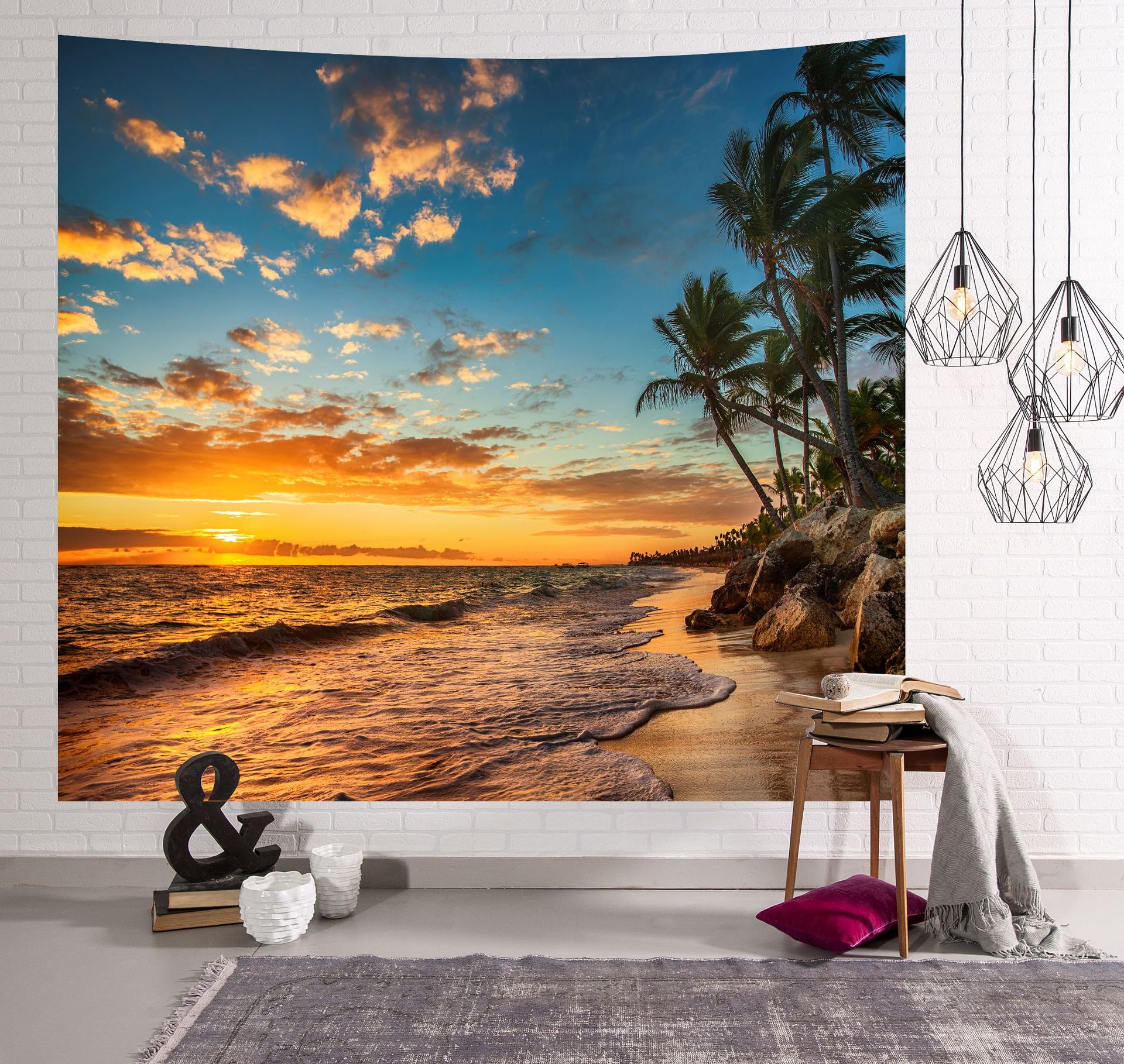 タペストリー 壁掛け 壁飾り インテリア ファブリックポスター おしゃれ 部屋飾り 背景布 目隠し 寝室 カーテン 海辺のサンセットの絵柄 幅150cmx縦130cm