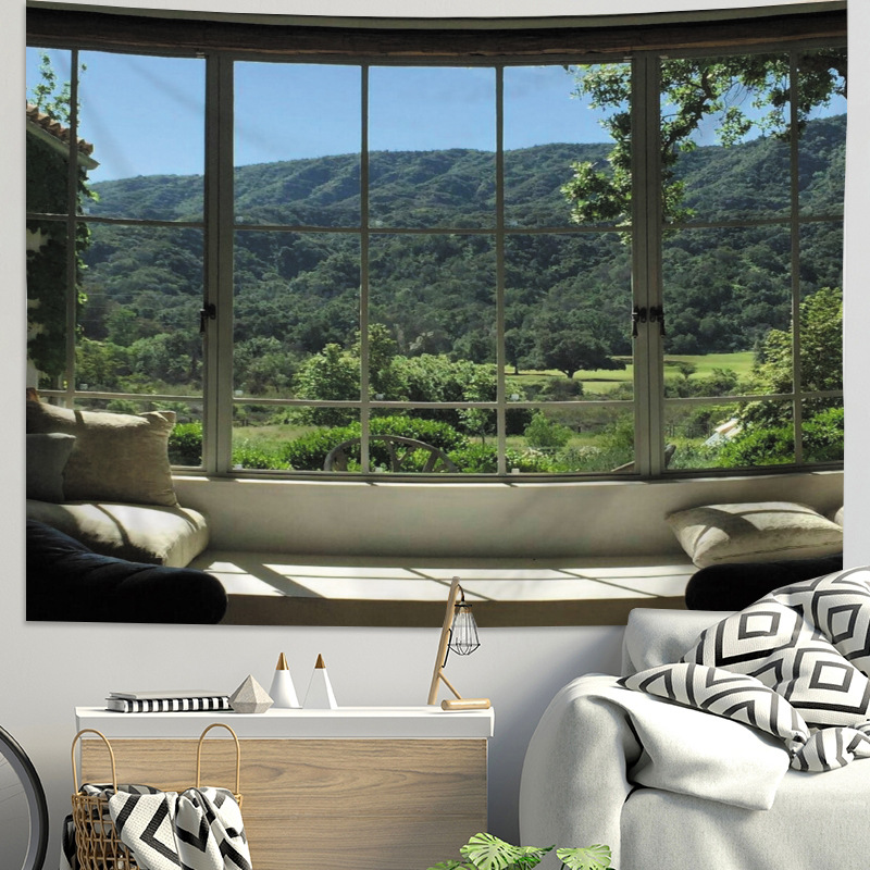 タペストリー 壁飾り 壁掛け装飾布 布ポスター 壁の装飾 装飾布 目隠し小物 寝室のカーテン インテリア おしゃれ 背景布 窓からの風景の絵柄 幅150cmx縦130cm