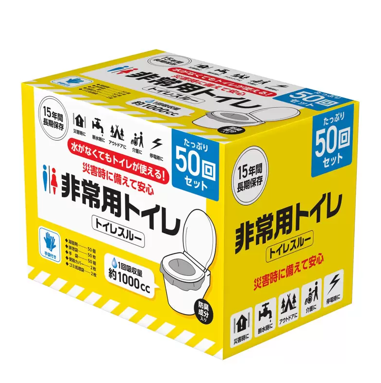 トイレスルー 非常用トイレバッグ コストコ COSTCO 1箱 50回分 簡易トイレ ポータブルトイレ 携帯トイレ 防災 携帯 防災グッズ 防災トイレ アウトドア キャンプ 介護 [ 手袋 凝固剤 排泄袋 便座カバー ゴミ処理袋 ] 15年長期保存
