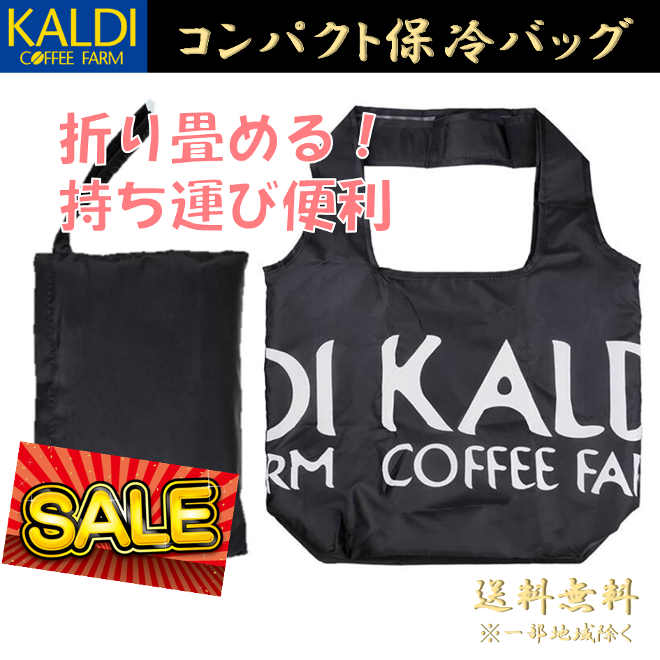 カルディ コンパクト保冷バッグ KALDI セール クーラーバッグ ブラック 黒 1枚 エコバッグ 保冷 ショッピングバッグ トート 買い物袋 折り畳み プレゼント 収納