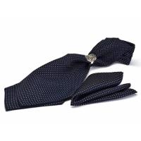 ネクタイ アスコットタイ リング ポケット チーフセット HUGO VALENTINO ヒューゴバレンチノ asc-10 ネイビードット ポイント利用