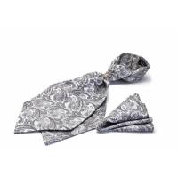ネクタイ アスコットタイ リング ポケット チーフセット HUGO VALENTINO ヒューゴバレンチノ asc-19 シルバー グレー ペイズリー柄 ポイント利用