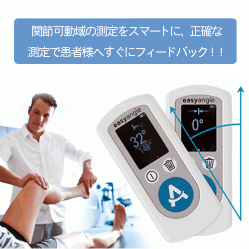 関節可動域の測定をスマートに easyangleは、関節の可動域を測定するための先進的な機器です。 正確な測定で結果を保存し、患者様へすぐにフィードバックすることができます。 【正確な測定】【操作が簡単】【結果の保存】 |
