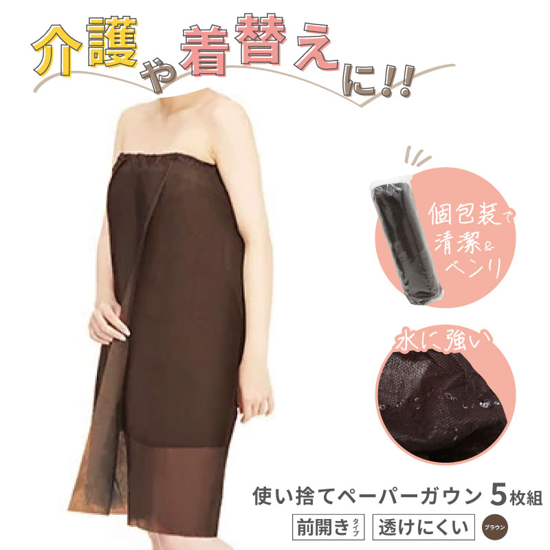 ■5枚組■ ペーパーガウン 前開き ブラウン ガウン 使い捨て 不織布 エステ 着替え ポンチョ ケープ 旅行 入院 介護