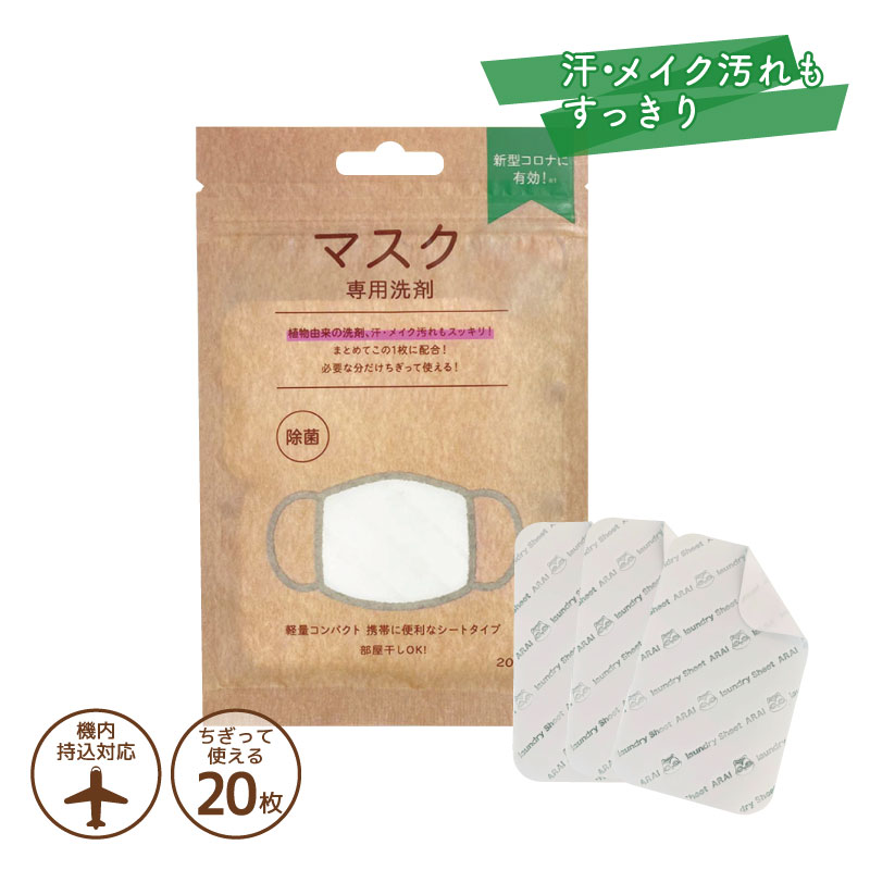 マスク専用洗剤 20枚入 洗濯シート 携帯用 コンパクト 旅行 出張対応 時短洗濯 ミニマル生活 スマート洗濯 持ち運び便利