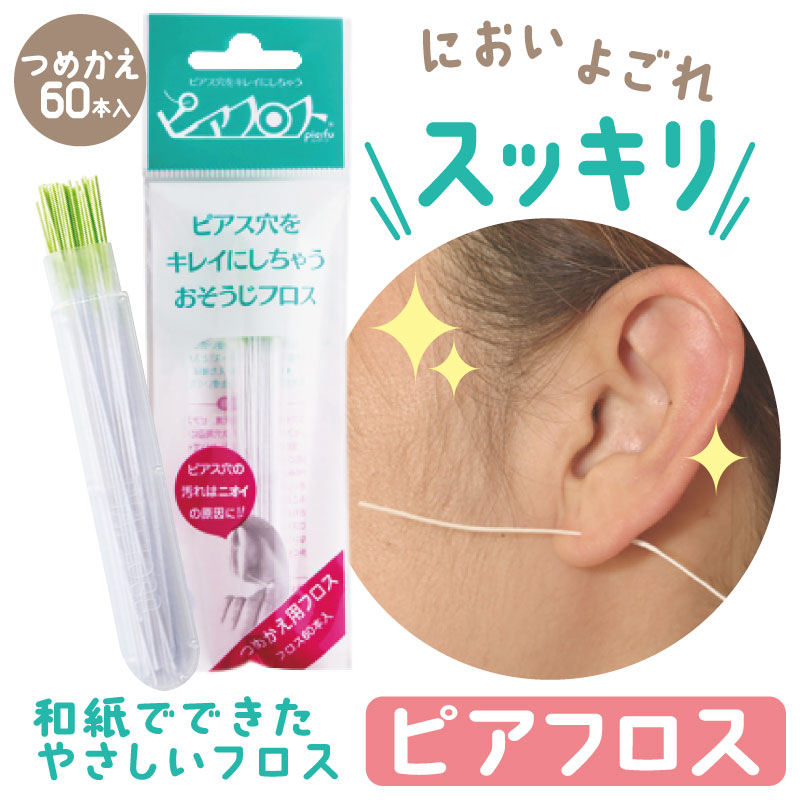 ピアフロス つめかえ用 60本入 ピアス ホール 掃除 フロス 洗浄 ピアスホール 掃除用フロス 掃除 ピアス穴のそうじ プチプラ ピアスホール クリーナ