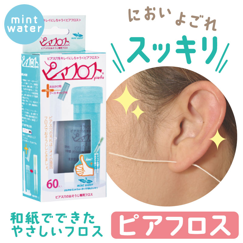 ピアフロス ミントウォーター 60本入 ピアス ホール 掃除 フロス 洗浄 ピアスホール 掃除用フロス 掃除 ピアス穴のそうじ プチプラ ピアスホール クリーナー