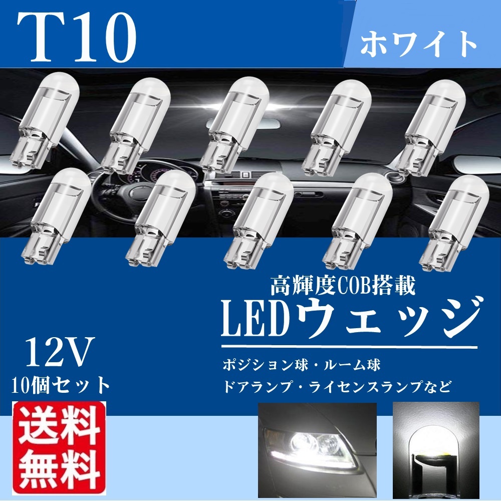 T10 LED ウェッジ バルブ ルームランプ ポジションランプ ナンバー灯 LEDバルブ トランク灯 車 バイク ホワイト 白 12V 高輝度 10個