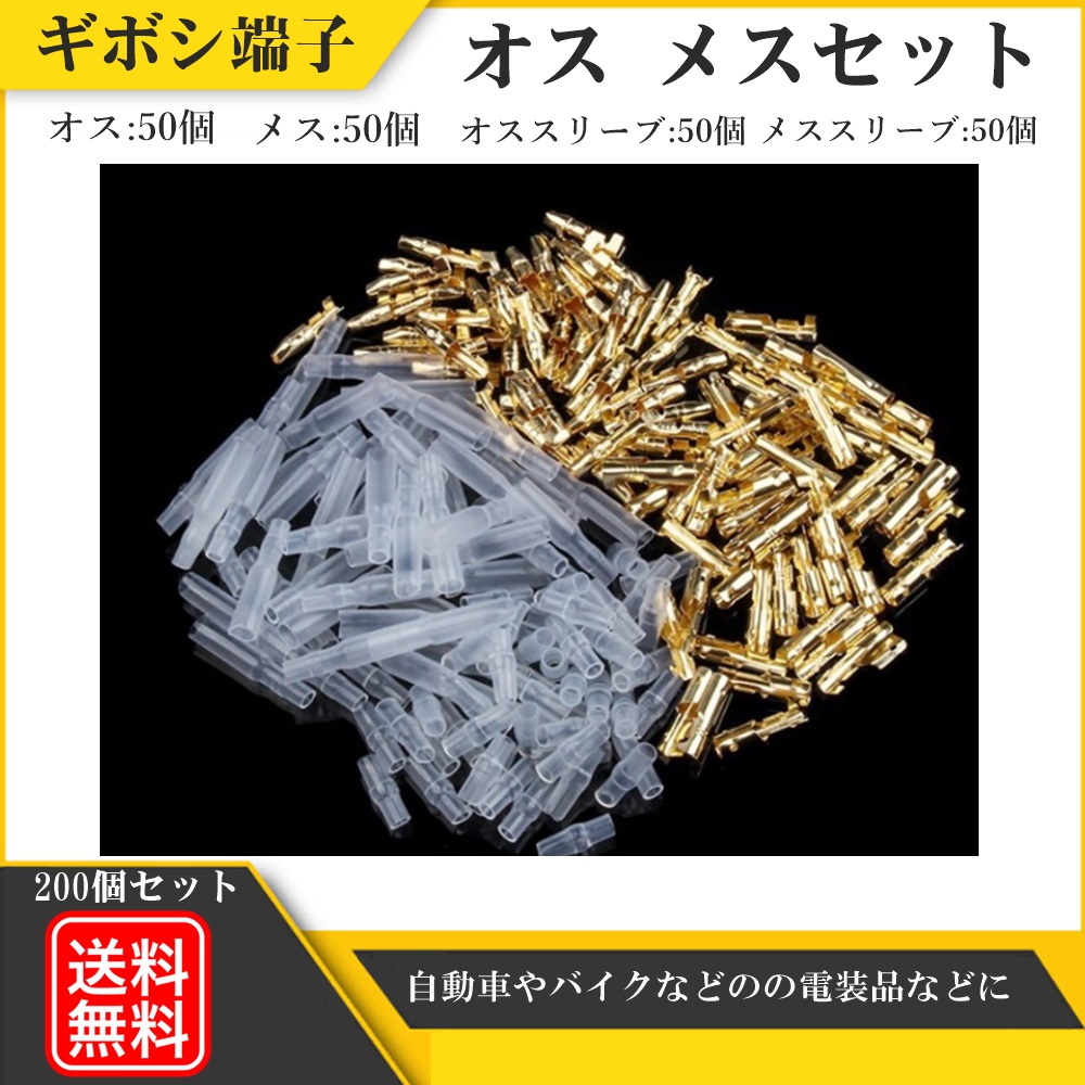 ギボシ 端子 丸型 200個 セット スリーブ 電工 圧着 端子 車 バイク 配線 DIY 加工 オス メス 配線接続 サイズ