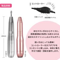 コントローラー付きアダブラをコンセントに差し込み、本体と繋ぎ、手元で速度・回転を操作します。先端のビットを付け替えることで、ジェルオフ/サンディング/甘皮処理など、様々な使い方ができます。