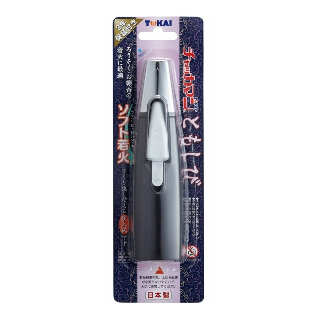【チャッカマン ともしびの商品詳細】●CR(チャイルドレジスタンス)規制対象の除外要件を満たしたチャッカマンなので、女性やシニアの方に優しいソフト着火タイプです。●操作ボタンが大きいプッシュ式ですので、着火動作がスムーズです。●繰り返しご使用出来る、ガス注入式です。●色目を抑えているので、仏事用としての使用にも最適です。●お子様にも安心なストッパー付きですので、ご使用時以外は、ストッパーを「OFF」にして下さい。●現在のCR対応品の点火棒により、着火ボタンが固い、使い難いといった方に最適です。●アウドドア・花火・線香やローソク等の着火に便利です。ミニ型の為、携帯にも便利です。また、災害時の備えとしても、ご活用下さい。●2年保証付【使用方法】・商品本体の着火ボタンを押して着火して下さい。【規格概要】<材質>本体:ABS樹脂炎口:鉄ガスタンク:AS樹脂【注意事項】・ご使用にならない時は、必ずストッパーを「OFF」にして下さい。・子供には絶対使用させないで下さい。また子供の手の届かない場所に保管して下さい。・火のそば(1.5m以内)や、50度以上の高温又は長時間の日光が当たる場所には、絶対に置かないで下さい。・穴を開けたり火に投じないで下さい。破裂等により火災ややけどの原因となります。・ガスを完全に使い切ってから、不燃ゴミとして廃棄して下さい。尚、不燃ゴミの分類については、各自治体のルールに従って下さい。・着火や炎調整の際には、炎口を顔、及び衣類に近づけて着火しないで下さい。・ご使用後は炎が完全に消えたことを確認して下さい。・ガスの注入は、火気のない風通しの良い場所で行って下さい。・ガス注入時に着火ボタンを操作しないで下さい。・ガスを注入した場合、2分間以上経過してから使用して下さい。・タバコ・葉巻・パイプ等の着火用として使用しないで下さい。やけどの原因となります。・着火後は、冷えるまで炎口付近に触れないで下さい。・花火での使用の際、花火の火花が炎口に当たらないように注意して下さい。・分解する、投げる、落とす等の衝撃を与えないで下さい。破裂等により火災ややけどの原因となります。・30秒以上、点火し続けないで下さい。故障の原因となります。・炎口部分で、炭・灰等に触れたりかき混ぜたりしないで下さい。故障の原因となります。・湯気・油・花火の硝煙等の異物を炎口部分に付着させないで下さい。着火不良の原因となります。・気温30度以上の高温時、10度以下の低温時や、高地での環境下では、着火しにくいことがあります。・水の近く、湿気の多い場所で保管しないで下さい。故障の原因となります。・本製品をグリル等の他の器具に使用する場合は、その器具製造業者が提供する全ての取扱説明書及び警告文に従って下さい。・ご購入後はお早めにご使用下さい。【原産国】日本