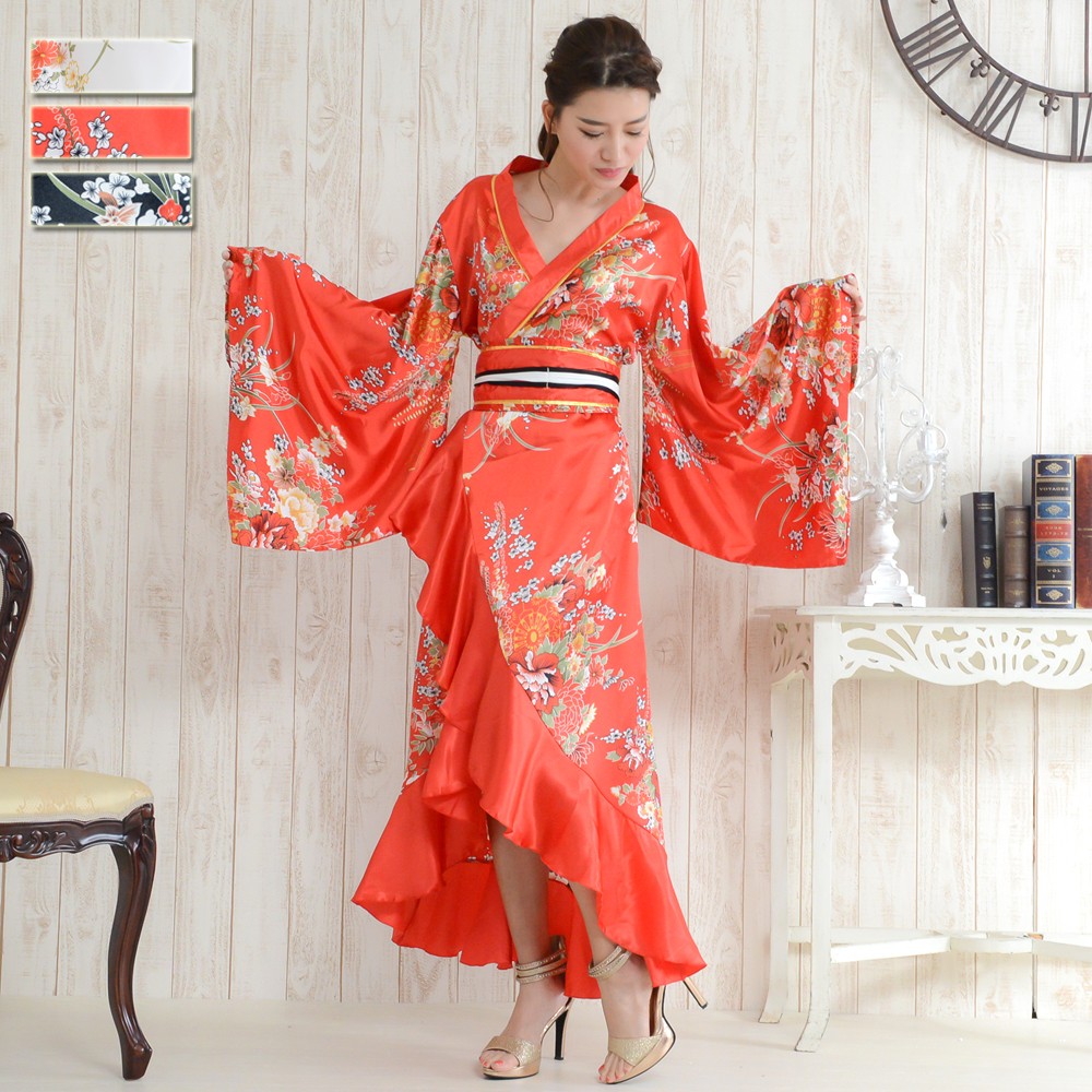 花魁 着物ドレス キャバドレス コスチューム コスプレ 浴衣 イベント よさこい ロングドレス ステージ衣装 帯付き花魁着物ロングドレス