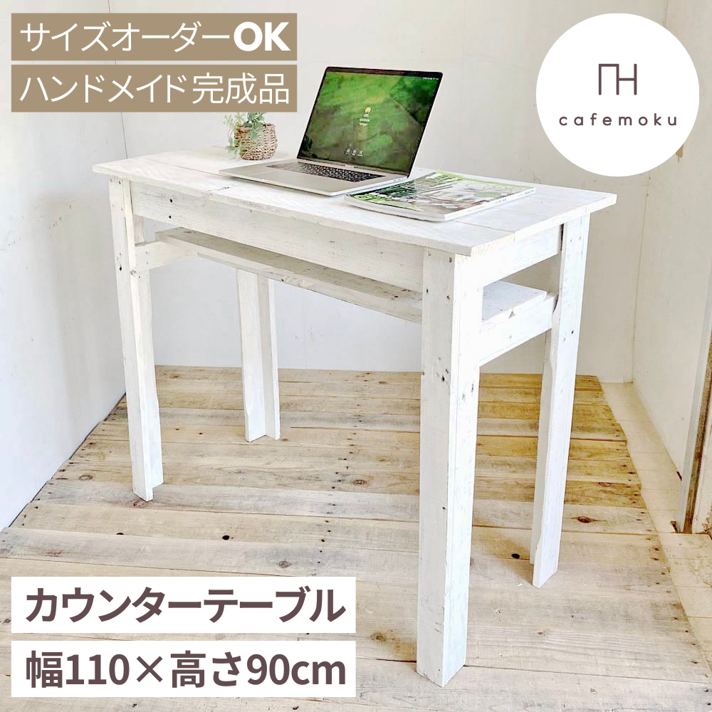カウンターテーブル キッチンカウンター 高さ90cm 幅110cm 白 ホワイト ハンドメイド家具 サイズオーダー
