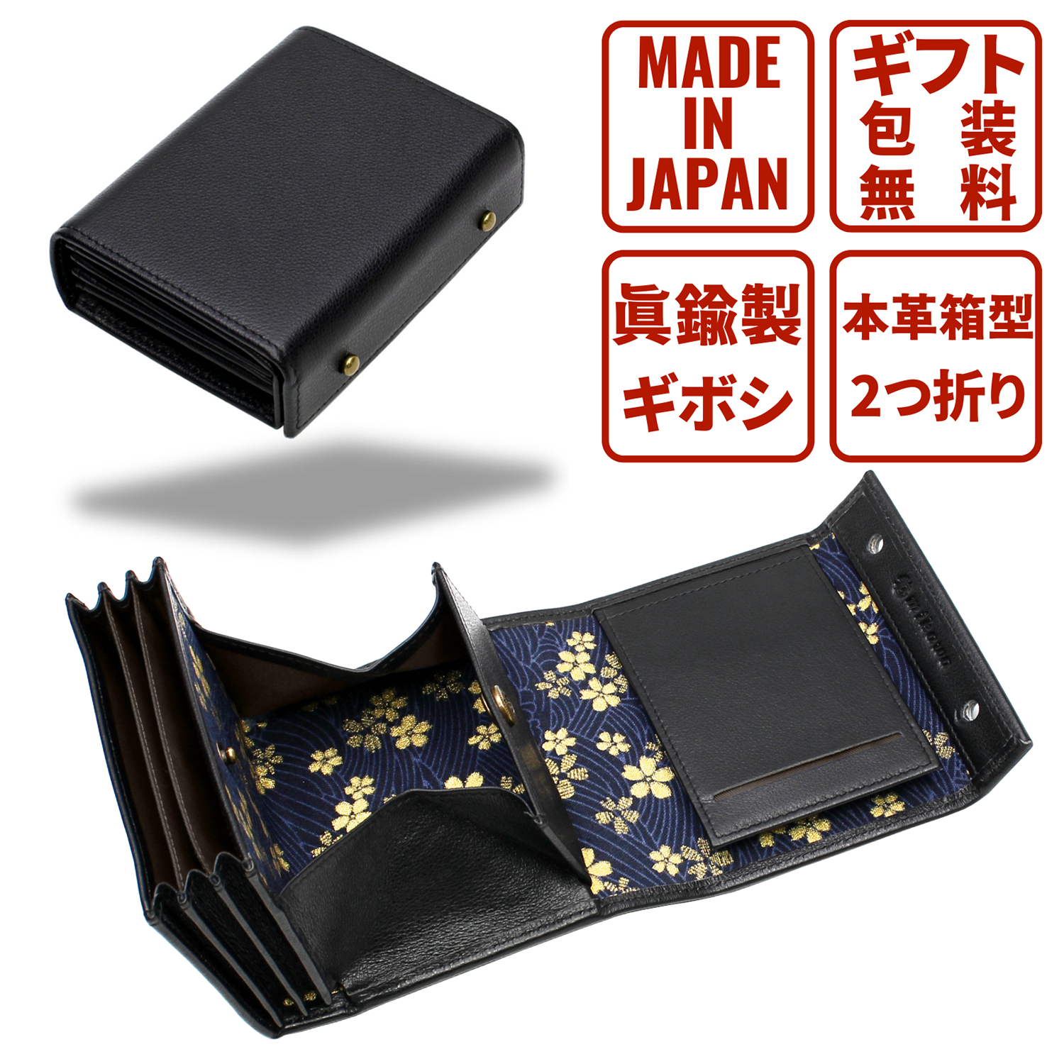 【仕様】開閉 ギボシ留め 札入れ×1 ボックス式小銭入れ×1 カード入れ×4
