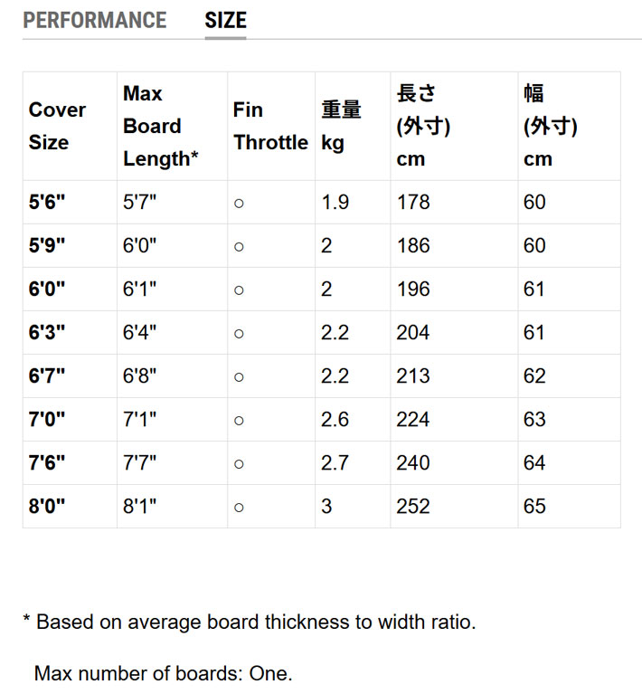 [メーカー提示対応可能サイズ]ボード長さ/6'0"(182.9cm)まで、ボード最大幅/56.9cmまで