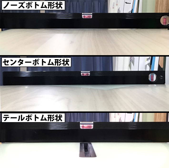 前方にワイデストポイントを置く事により先端部の安定性を増し、タックしたハードエッジなテールはボトムによる加速とカットバックを容易にしています。