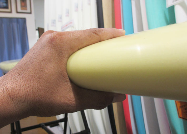ボトムはナチュラルなノーズコンケーブがボードの1/3位まで入り、テイルまではわずかにロールしています。